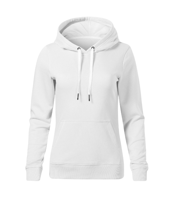 Mikina dámská | Výplňková pletenina, vnitřní strana nepočesaná 80 % bavlna, 20 % recyklovaný polyester (složení se může lišit – barva 12 – 70 % bavlna, 30 % recyklovaný polyester) | Barva: bílá