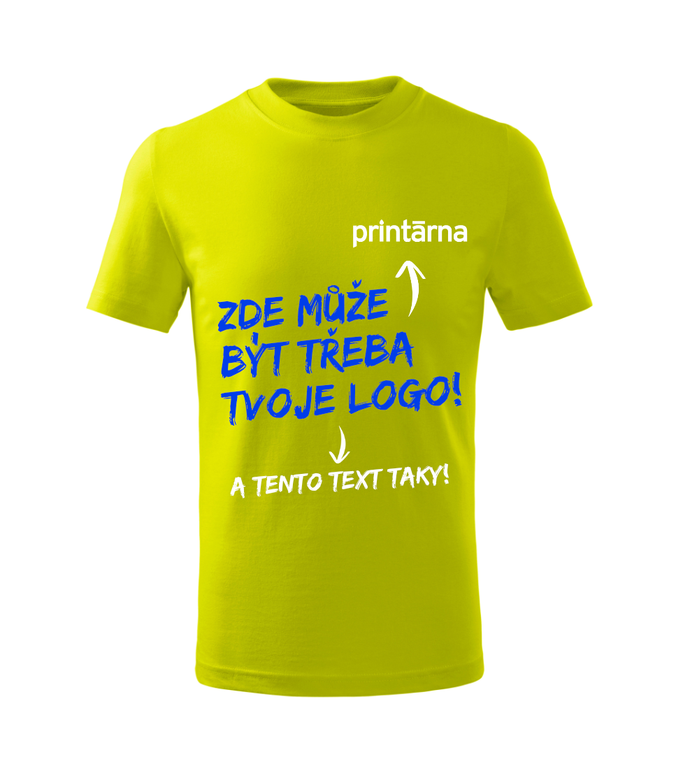 Tričko si můžeš nechat potisknout nebo vyšít přesně podle představ – pro školu, sportovní tým nebo malý merch.
