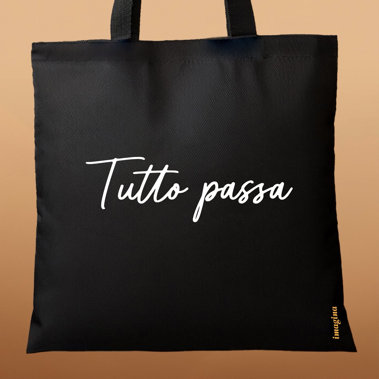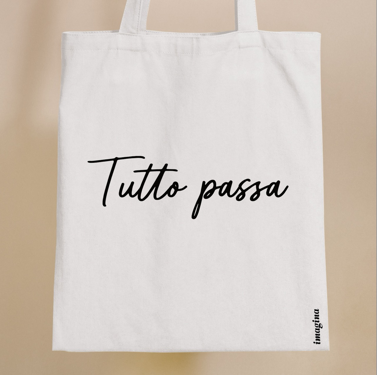 Praktická a stylová plátěná taška s jednoduchým potiskem „Tutto Passa“. Vyrobená z kvalitní bavlny, s dlouhými uchy pro pohodlné nošení. Ideální pro každodenní použití, na nákupy nebo na pláž.